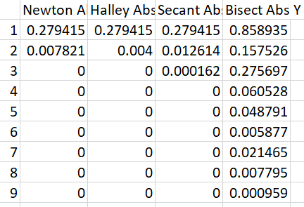 Once again, Halley wins, newton comes in second, then secant, then bisect. Neat!