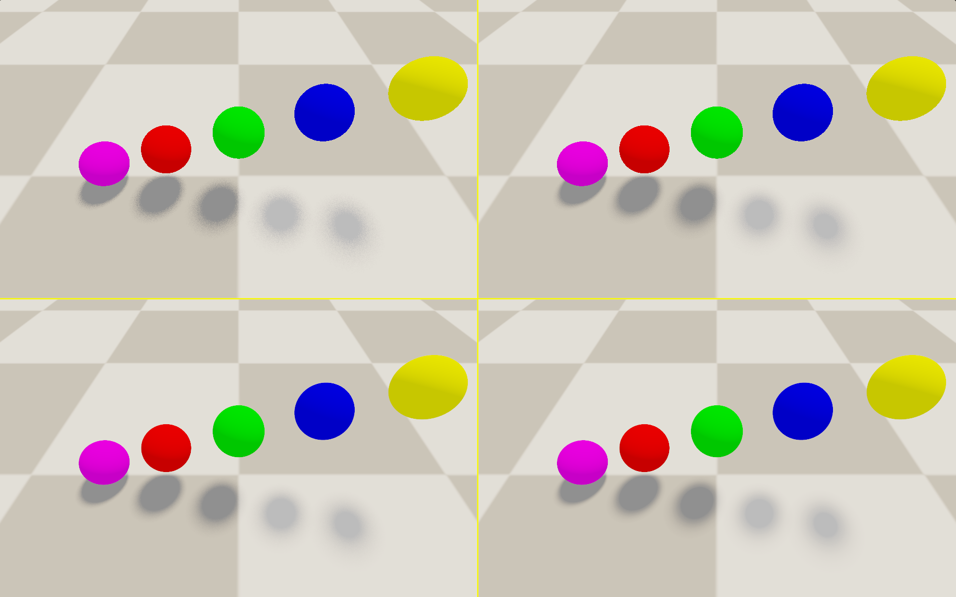 But, you might notice that as your scene is rendering, shadertoy is reporting 60fps, meaning that the scene rendering is being limited by vsync. The rendering would go faster than 60fps if it could, and so would converge faster, but it can’t.