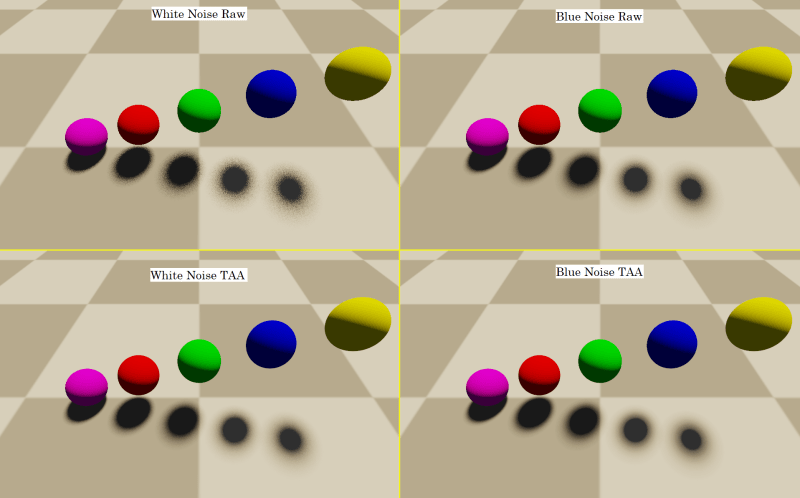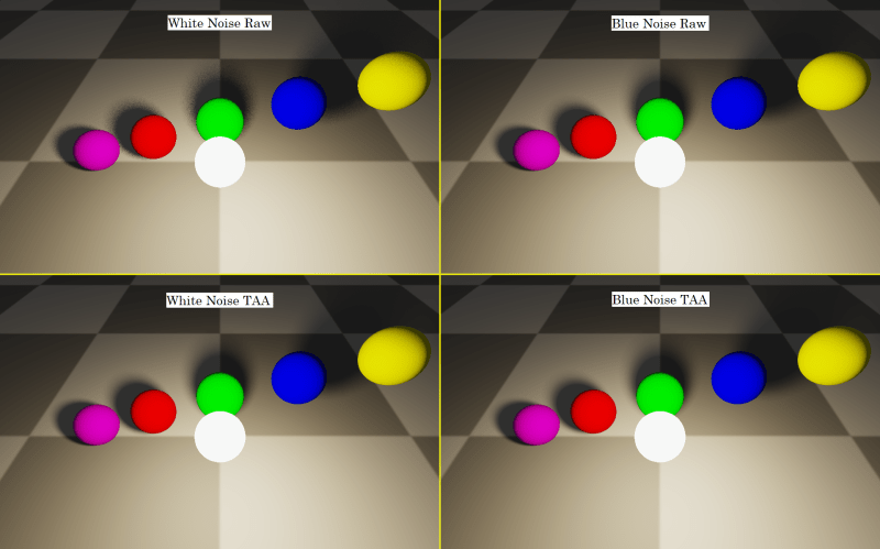 First, we are going to initialize a random seed for the current pixel, based on pixel position and frame number, so that each pixel gets different random numbers, and also so that each pixel gets different random numbers each frame.