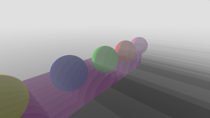 Anyhow, instead of using the ray direction for the color for each pixel, we are going to test the ray against a scene made up of multiple objects, and give a different color to each object. We do that in the GetColorForRay function.