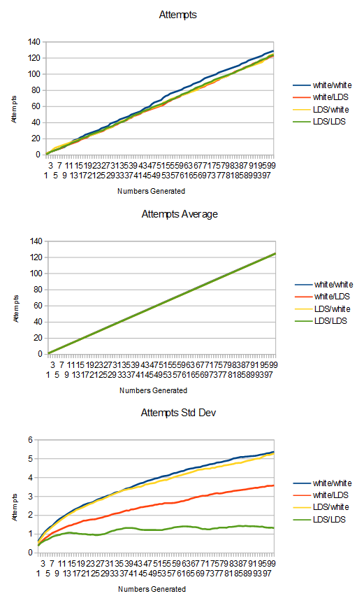 BTW even though i show the formula for irrational LDS as index multiplying by the irrational number, that will have numerical precision problems as the index gets larger. You are way better off just adding the irrational and doing modulus when you want the value for the next index. The difference is huge, surprisingly!