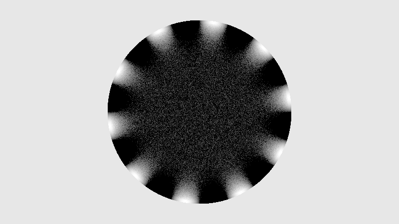 If you have heard that plants grow leaves in a golden ratio pattern, now is probably a good time to explain why. Here is the last frame of the golden ratio gif, when there are 16 samples.
