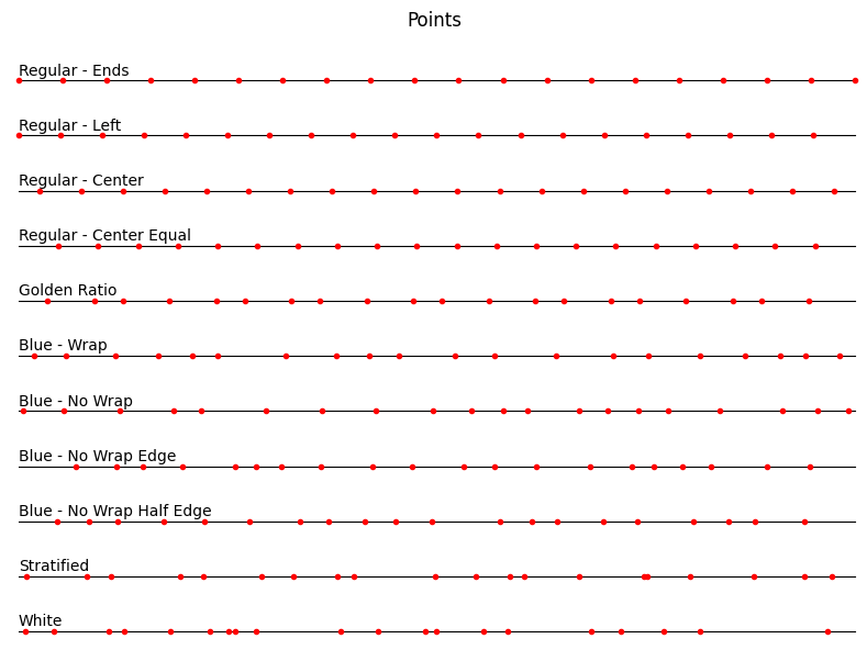 - Golden Ratio: This is the 1D golden ratio low discrepancy sequence.