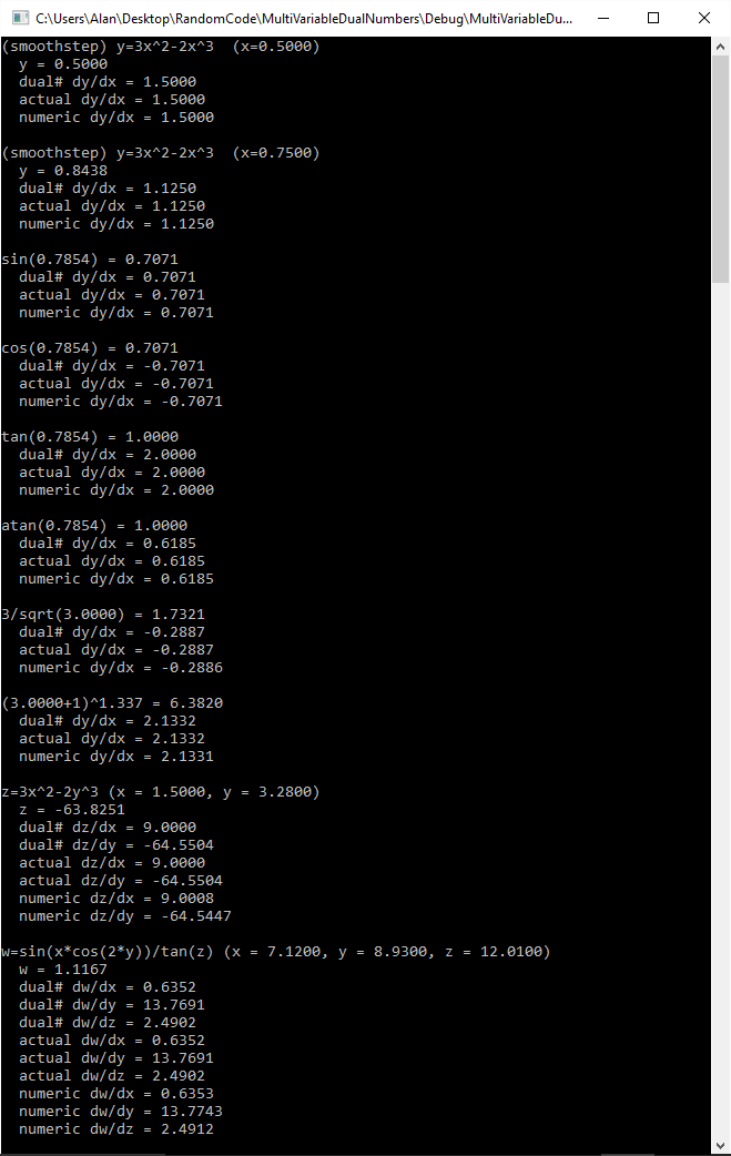 Lastly, it might be interesting to get the derivatives of the inputs and play around with the input you gave it. Some experiments I can think of: