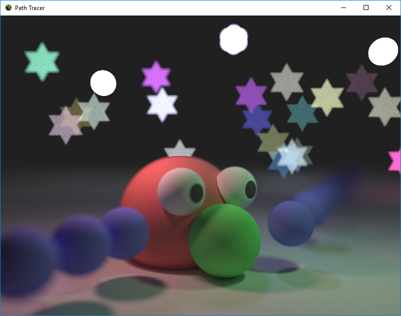 You can optionally multiply the result of the ray trace by the aperture size like we mentioned in the pinhole camera to make the brightness be properly affected by aperture size. If you’d rather not fight with exposure multiplier calculations as you change aperture size though, feel free to leave it out.